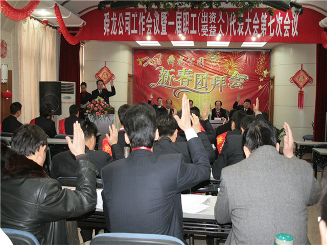2011年元月28日上午8:00,舜龍公司工作會議暨一屆職工(出資人、受益人)代表大會第七次會議在公司會議室隆重召開。參加會議的人員有集團公司股東代表劉萬春副部長、市場營銷部亓仲晨副部長、職工代表、受表彰的先進集體和個人。