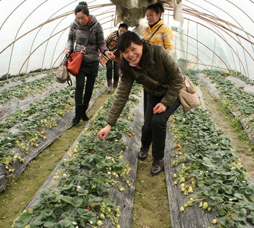 和風(fēng)徐徐,草木吐綠,草莓大棚里一派生機(jī)勃勃的景象。新鮮的草莓,個(gè)個(gè)顆粒飽滿,鮮紅欲滴,聞著水果散發(fā)出的清香,女職工們俯首彎腰,辛勤勞作,一邊輕巧地采著那飽滿的果實(shí),一邊嘗著新鮮,她們?cè)趧趧?dòng)中收獲豐碩的果實(shí),享受節(jié)日的快樂。