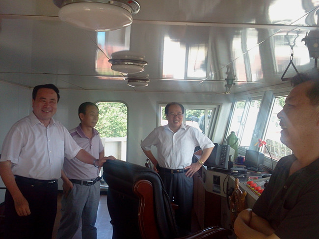 2012年6月20日在公司董事長(zhǎng)余龍懷、總經(jīng)理劉曹應(yīng)、副總經(jīng)理徐經(jīng)恒帶領(lǐng)下,公司黨群部、經(jīng)管部、業(yè)務(wù)部等部門負(fù)責(zé)人赴蕪湖舜龍18號(hào)江輪進(jìn)行了首次質(zhì)量標(biāo)準(zhǔn)化檢查。時(shí)逢盛夏、汛期,公司領(lǐng)導(dǎo)一行帶去了防暑慰問品對(duì)舜龍18號(hào)江輪人員進(jìn)行了親切的問候和真誠(chéng)的關(guān)愛。
