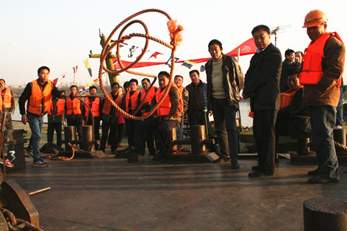 12月2日下午,舜龍公司2013年度“安康杯”競賽航運技能比武在平圩碼頭舉行。公司董事長、黨委書記余龍懷,黨委副書記、工會主席王治全,紀(jì)委書記、副總經(jīng)理徐經(jīng)恒以及相關(guān)部門負責(zé)人到場觀看。比武活動由黨委副書記、工會主席王治全主持。徐經(jīng)恒擔(dān)任裁判組組長。
