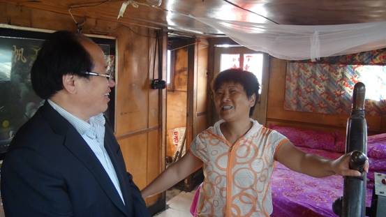 回到輪船上,余董事長又和船長、輪機(jī)長進(jìn)行了長時(shí)間的面對面交流,并征求意見。“船長,我們這次跟船是想切身感受一下你們的生活和工作情況,順便想聽一聽你們在工作中有哪些困難和問題需要公司解決?對船隊(duì)的安全運(yùn)行、多拉快跑有什么好的建議?”船長王科才、輪機(jī)長李順龍表示非常感謝公司領(lǐng)導(dǎo)能夠親自跟船考察。他們說:“一定會(huì)嚴(yán)格按照公司的安全要求切實(shí)履行職責(zé),并帶領(lǐng)船員共同做好本職工作,讓船舶安全,讓船員平安。”在寬松的氛圍里,隊(duì)長劉永玉插話說:“說實(shí)話,如今航運(yùn)經(jīng)濟(jì)低迷,我們公司營運(yùn)較困難,但在船員們在公司工作多年,對公司領(lǐng)導(dǎo)的關(guān)心一直記在心上,我們船隊(duì)堅(jiān)信情況會(huì)好轉(zhuǎn)。駁船上基本上是夫妻,生活上沒有問題,就是希望能多跑航次提高收入,目前船員隊(duì)伍是穩(wěn)定的,請領(lǐng)導(dǎo)放心。”