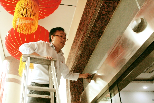 雖然天空飄著綿綿細雨,黨員們?nèi)约娂姅]起袖子,干得熱火朝天。他們拿起掃把,扛起鐵鍬,端起水盆,彎腰撿拾廢紙,一遍遍仔細擦拭玻璃門和文化標(biāo)牌,疏通排水溝,清理墻角的垃圾和雜草,修剪綠化帶植物……大家個個忙得大汗淋漓,連身上的衣服被雨水打濕,都渾然不覺。為營造國慶氣氛,辦公室劉文明主任還帶領(lǐng)幾名黨員將二樓平臺上的彩旗插好,為公司辦公大樓平添了幾分節(jié)日的喜慶色彩。