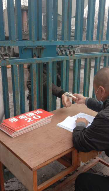 業(yè)務(wù)員桑慶軍為進(jìn)礦駕駛員量體溫