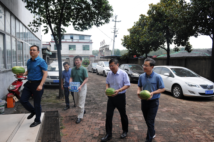 連日高溫,驕陽似火。為做好高溫季節(jié)防暑降溫工作,切實保障一線職工的安全健康。8月4日上午,公司黨委副書記、總經(jīng)理馬剛,黨委副書記、紀委書記、工會主席梁斌,財務(wù)總監(jiān)陳學(xué)忠在淮河物流事業(yè)部總經(jīng)理班友慧、經(jīng)營發(fā)展(業(yè)務(wù)管理)部部長鄒建春的陪同下親臨河南周口市劉灣港煤場看望慰問一線職工,送去西瓜等防暑降溫物品,并把組織關(guān)懷送到職工心坎上。