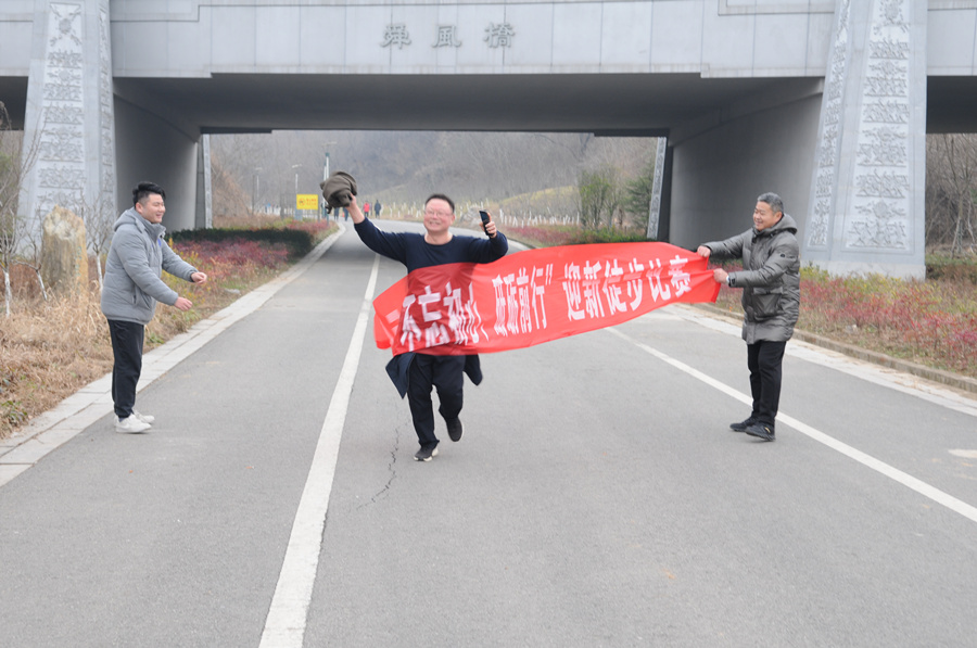 講話結(jié)束后,隨著洪亮的“出發(fā)”令下,大家向此次活動的終點站舜文化廣場進發(fā)。時值寒冬,冬季山林的落葉像油畫上濃墨重彩的一筆,美麗的仙女湖在冬季格外湛藍清冽,遠處高聳著的摩天輪仿佛在對大家招手、為大家吶喊加油。一路美景如畫,即使霧蒙蒙的天氣也無法熄滅大家如火的熱情和昂揚的斗志。有了身邊隊友的相互扶持和鼓勵,縱然沿途有辛苦、有汗水,大家也一路歡聲笑語,開懷暢敘,欣賞著舜耕山的湖光山色一路快樂前進。