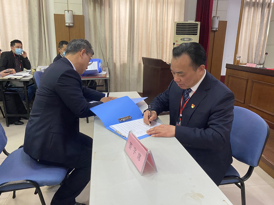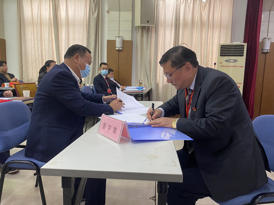 會(huì)上,公司法人代表與工會(huì)法人代表簽訂了《舜龍公司工資集體合同》,黨委書記與基層支部書記簽訂了《黨風(fēng)廉政建設(shè)目標(biāo)責(zé)任書》,總經(jīng)理與江海物流、西部物流事業(yè)部分別簽訂了《經(jīng)營(yíng)目標(biāo)責(zé)任書》、《安全生產(chǎn)目標(biāo)責(zé)任書》。