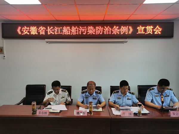 9月8日上午,市交通運(yùn)輸綜合行政執(zhí)法支隊聯(lián)合市地方海事(港航)管理服務(wù)中心在支隊二樓會議室召開《安徽省長江船舶污染防治條例》和《安徽省引江濟(jì)淮工程管理和保護(hù)條例》宣貫會。市地方海事(港航)管理服務(wù)中心黨委委員、副主任董春剛,市交通運(yùn)輸綜合行政執(zhí)法支隊黨委委員、副支隊長潘志軍,支隊海事大隊各中隊以及全市15家港口企業(yè)、20家航運(yùn)企業(yè)主要負(fù)責(zé)人參加會議,會議由海事大隊大隊長宮國主持。