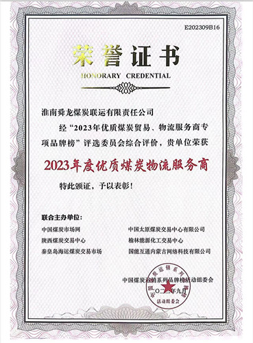 9月13日,在2023'CCTD中國煤炭市場高峰論壇(福州)數(shù)字運銷之夜歡迎晚宴上,“2023年優(yōu)質煤炭貿(mào)易、物流服務商專項品牌榜”榜單重磅發(fā)布,公司榮獲“2023年度優(yōu)質煤炭物流服務商”榮譽稱號。