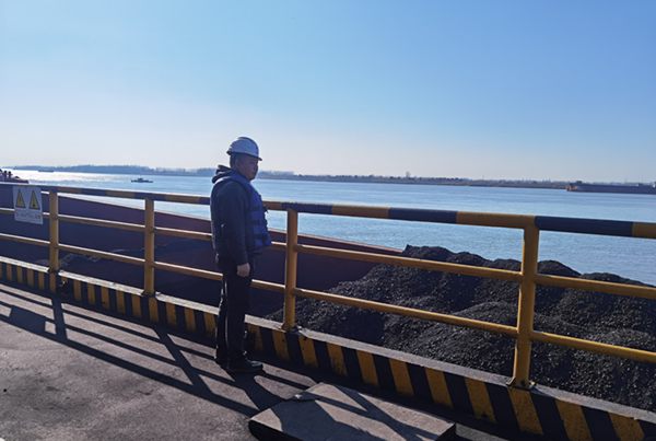 鎮(zhèn)江東港,項(xiàng)承峰在檢查過(guò)駁國(guó)電蚌埠海船新一海20監(jiān)控,侯爽在檢查鎮(zhèn)江東港至國(guó)能蚌埠電廠海船新一海20煤炭運(yùn)輸情況