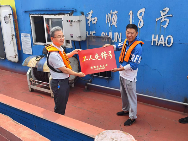 5月份,和順18號(hào)江輪被淮南市總工會(huì)授予“淮南市工人先鋒號(hào)”榮譽(yù)稱號(hào)。上船后,梁斌對(duì)和順18號(hào)舉行了授牌儀式,把這一份榮譽(yù)授予和順18號(hào)全體船員。梁斌強(qiáng)調(diào)這項(xiàng)榮譽(yù)是你們?nèi)w船員齊心協(xié)力安全航行、保質(zhì)保量完成公司的運(yùn)輸任務(wù)的成果,是公司對(duì)你們一年來(lái)工作的充分肯定,希望在下一步工作中進(jìn)一步弘揚(yáng)勞模精神,為全體“舜龍人”做好榜樣。