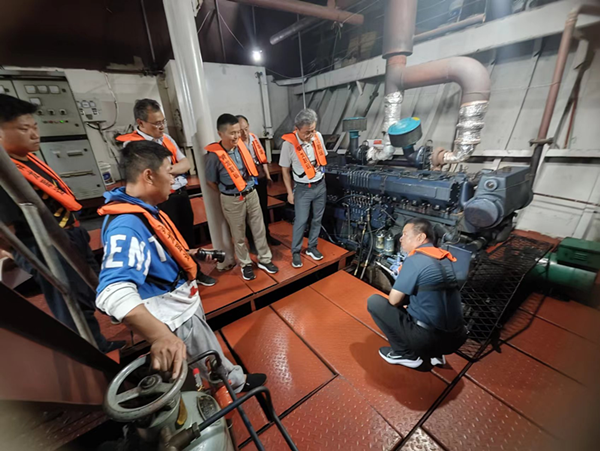 隨后梁斌、班友慧一行對(duì)和順18號(hào)駕駛臺(tái)雷達(dá)、高頻、監(jiān)控等設(shè)備的使用情況進(jìn)行詳細(xì)詢問(wèn),對(duì)機(jī)艙設(shè)備及維修保養(yǎng)情況、甲板及救生消防設(shè)備進(jìn)行了重點(diǎn)檢查。